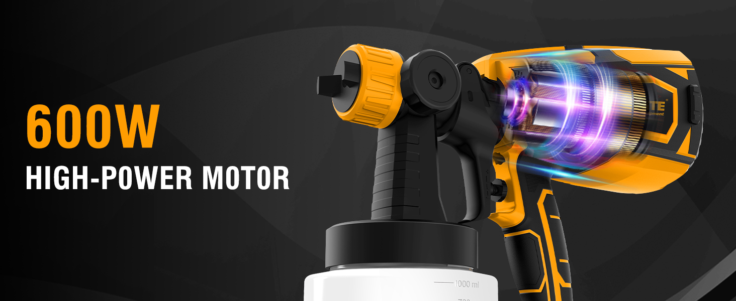 WORKSITE Spray Gun 600W Large Capacity 1000ML Portable Lightweight Electric Car Paint Sprayer Gun for Painting