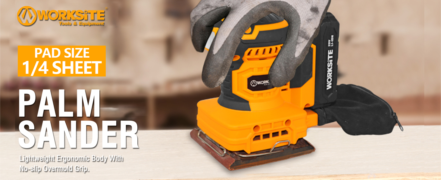 ✔Dust Resistant Design:Engineered with a dust-resistant switch, the WORKSITE Cordless Palm Sander allows you to work cleanly and efficiently, minimizing mess while maximizing productivity.