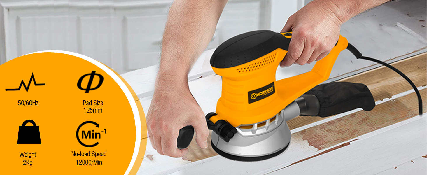 ✔Powerful Performance:The WORKSITE Orbital Sander 5 inch features a robust 300W motor that delivers an impressive no-load speed of 12000 RPM, making it ideal for efficient sanding in woodworking projects.