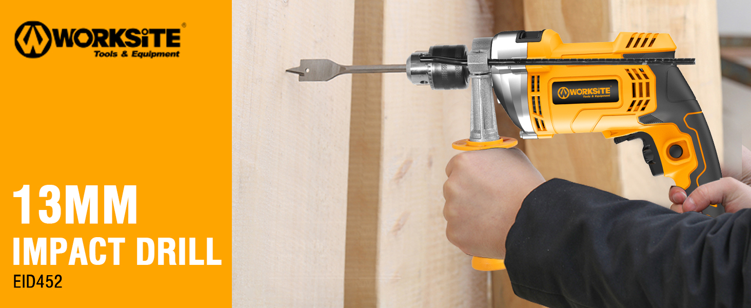 WORKSITE 750W corded impact drill with 0–2800 RPM variable speed, 13mm chuck, and max drilling capacity of 25mm in wood, 13mm in masonry, and 10mm in steel—designed for high-efficiency drilling. ✔Powerful Performance:The WORKSITE Electric Impact Drill boasts a robust 1050W motor, delivering exceptional drilling capabilities with no-load speeds of up to 2800 RPM, making it perfect for both professional and DIY projects. ✔Versatile Chuck Size:Featuring a 13mm chuck size, the WORKSITE Electric Impact Drill accommodates various drill bits, ensuring versatility in drilling through different materials including wood, steel, and masonry. ✔Impressive Working Capacity:This impact drill is engineered for efficiency, with a working capacity of 10mm for steel, 13mm for masonry, and an impressive 25mm for wood, allowing you to tackle diverse tasks effortlessly. ✔Variable Speed Control:The WORKSITE Electric Impact Drill includes a variable speed feature, enabling users to adjust the drilling speed according to the material and project requirements for enhanced precision and control. ✔Handheld Convenience:Designed for ease of use, this handheld impact drill provides excellent maneuverability, making it suitable for tight spaces and overhead work, ensuring a comfortable drilling experience every time.